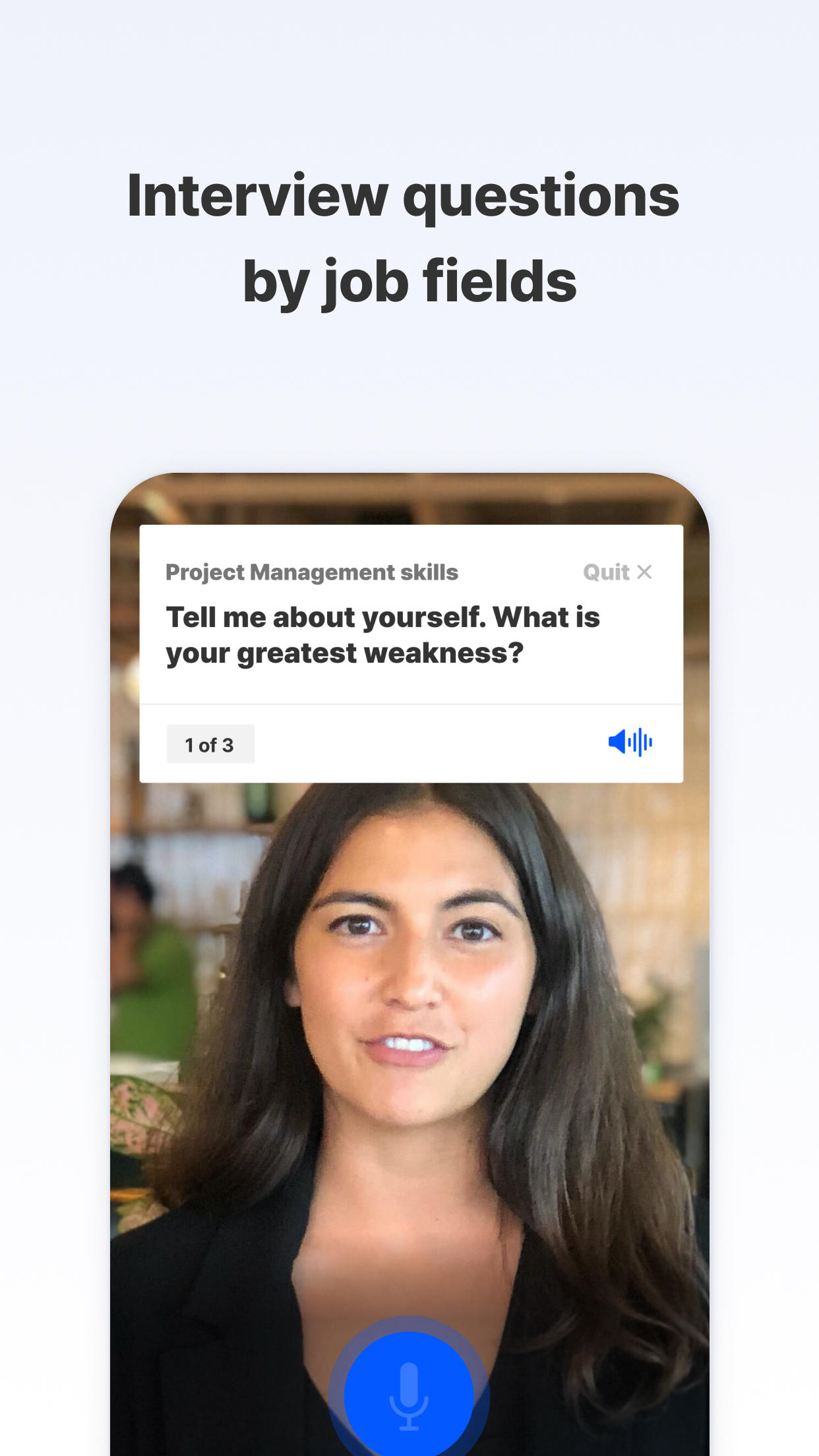 When you start the InterviewMe app, you are prompted to select a job category. Once you choose the job category you want to practice for, you can proceed with interview practice using tailored interview questions specific to that job category.